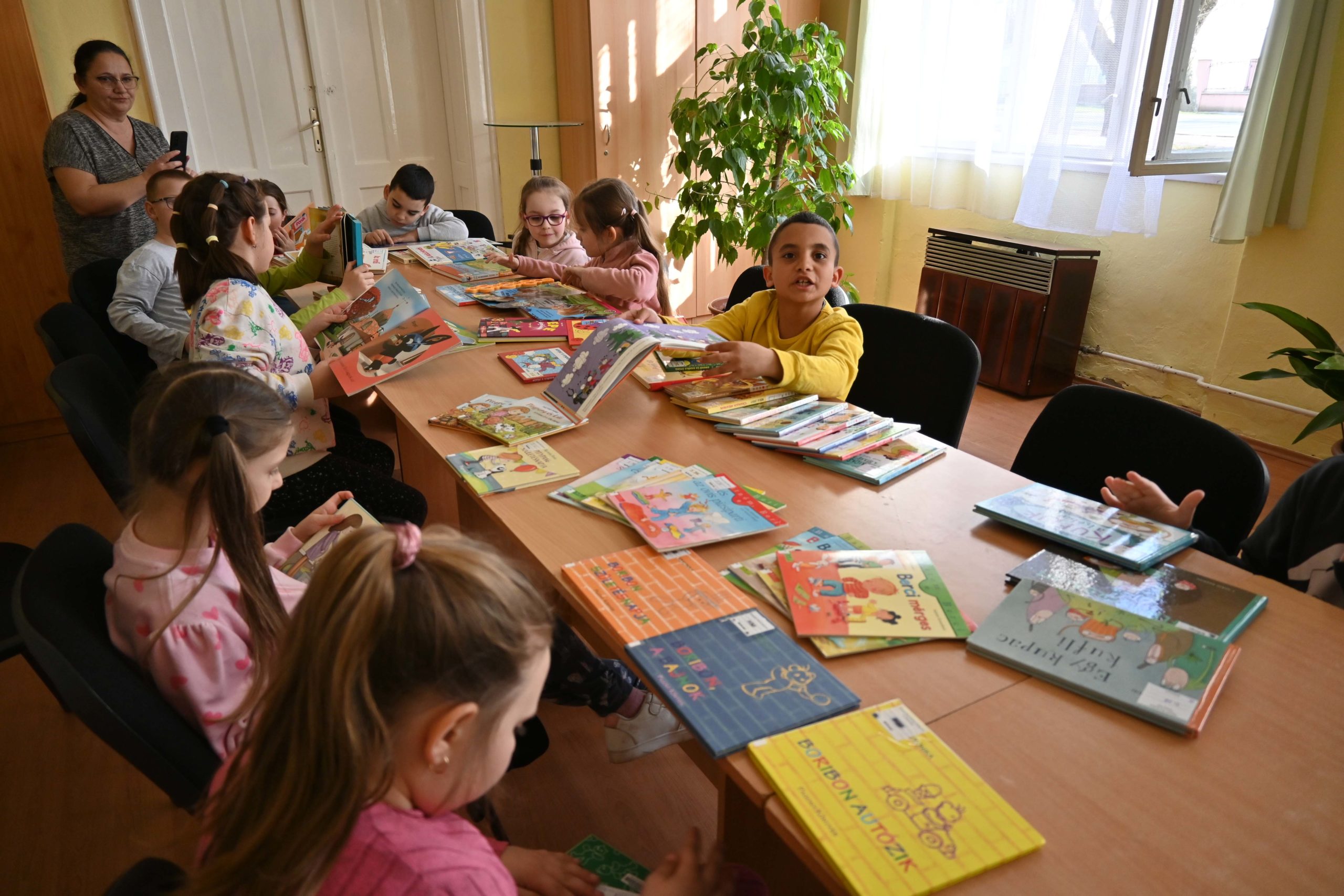 Elsősök a minikönyvtárban