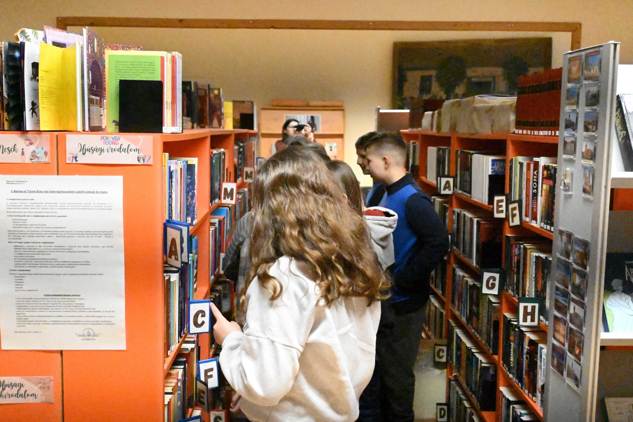 Szerb iskolások a könyvtárban